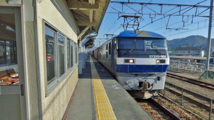 トップ画像は、山陽本線和気(わけ)駅ホームを通過するJR貨物EF210-901。ほよ~、この機関車、1996年(平成8年)に製造されたEF210形の試作機ですよ。