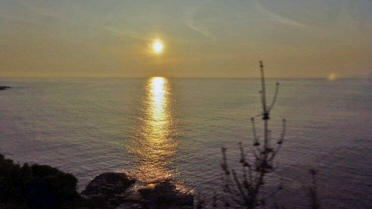 女島の向こうに夕陽。