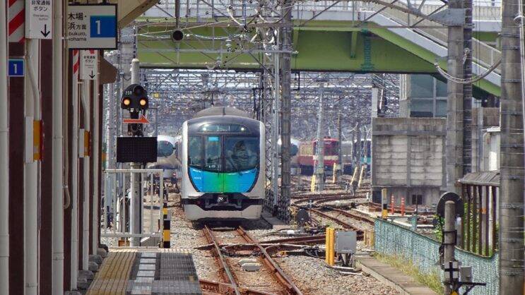 跨線橋から西側を見ることができます。スマイルトレインの急行飯能行が出発しています。