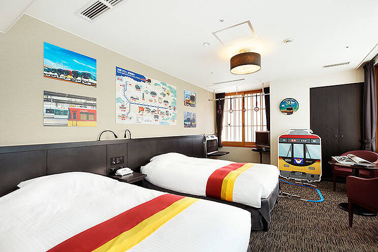 題して「京阪電車トレインルーム8011号」。京阪グループ開業110年を記念して誕生した、11月10日~2021年11月9日の期間限定・1日1室限定の特別なツインルーム(1~3名利用可)。