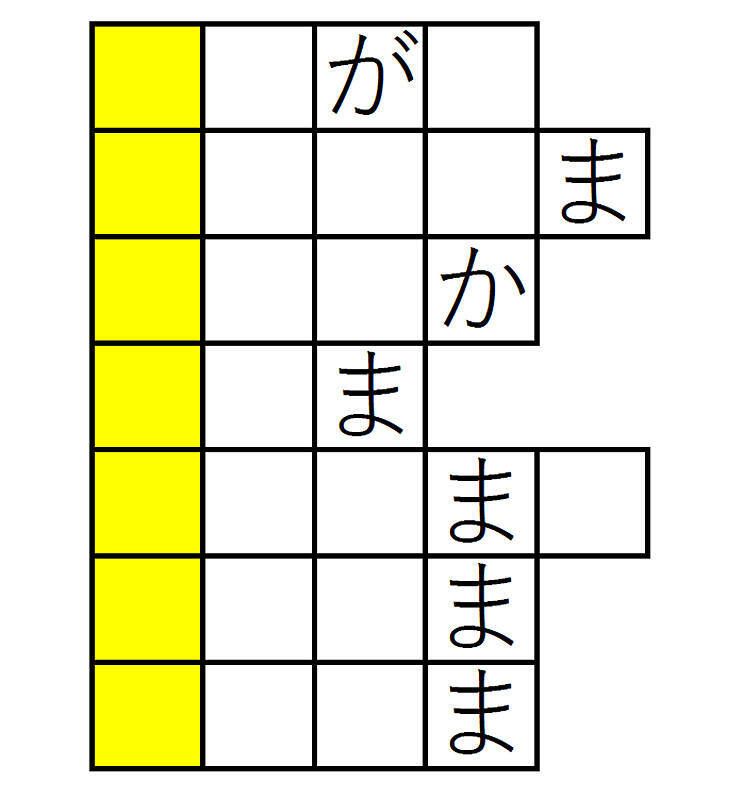 黄色いマス目を縦から読むと、いま戦ってるあの選手の名が出てくるよ。