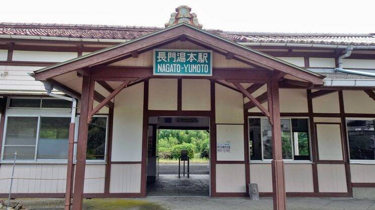 長門湯本駅は、1924年(大正13年)美禰線(現・美祢線)の於福駅~正明市(現・長門市駅)延伸開業時に設置されました。国鉄分割民営化でJR西日本の駅になります。この立派な駅舎が最初から無人のワケがありません。しかし、無人駅です。