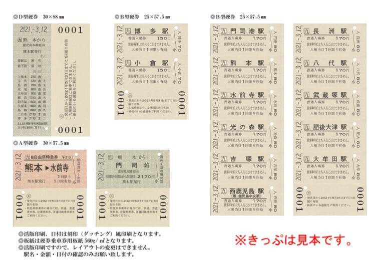 (注)水俣駅始終着の列車も存在したが、 現在は肥薩おれんじ(株)の駅のため含まれない。その代わり、入場券ではなく行先字幕を硬券に印字する。