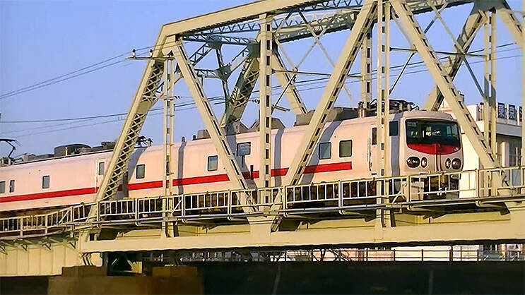―――一日数本の定期貨物列車が走る総武線支線 新金線。この中川放水路橋梁には、動画でみえるように、もう1線ぶん線路が敷ける橋台が残っている。