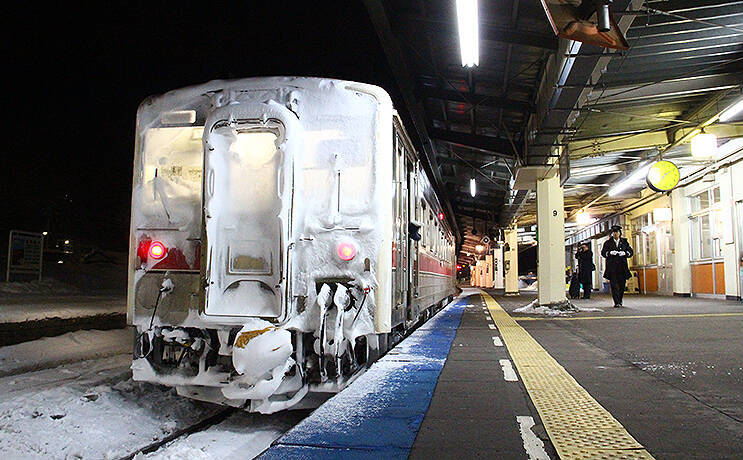 画像は2013年3月始め、北海道。顔面をまっしろに凍らせたキハ54。