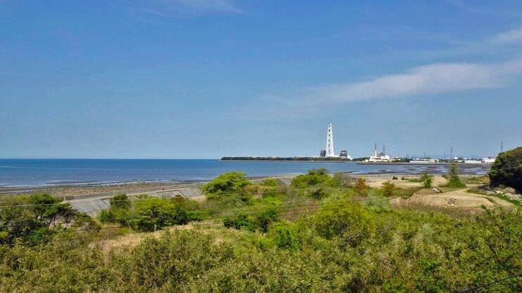 跨線橋から周防灘を望みます。トップ画像よりも正面を見ています。干潟があります。