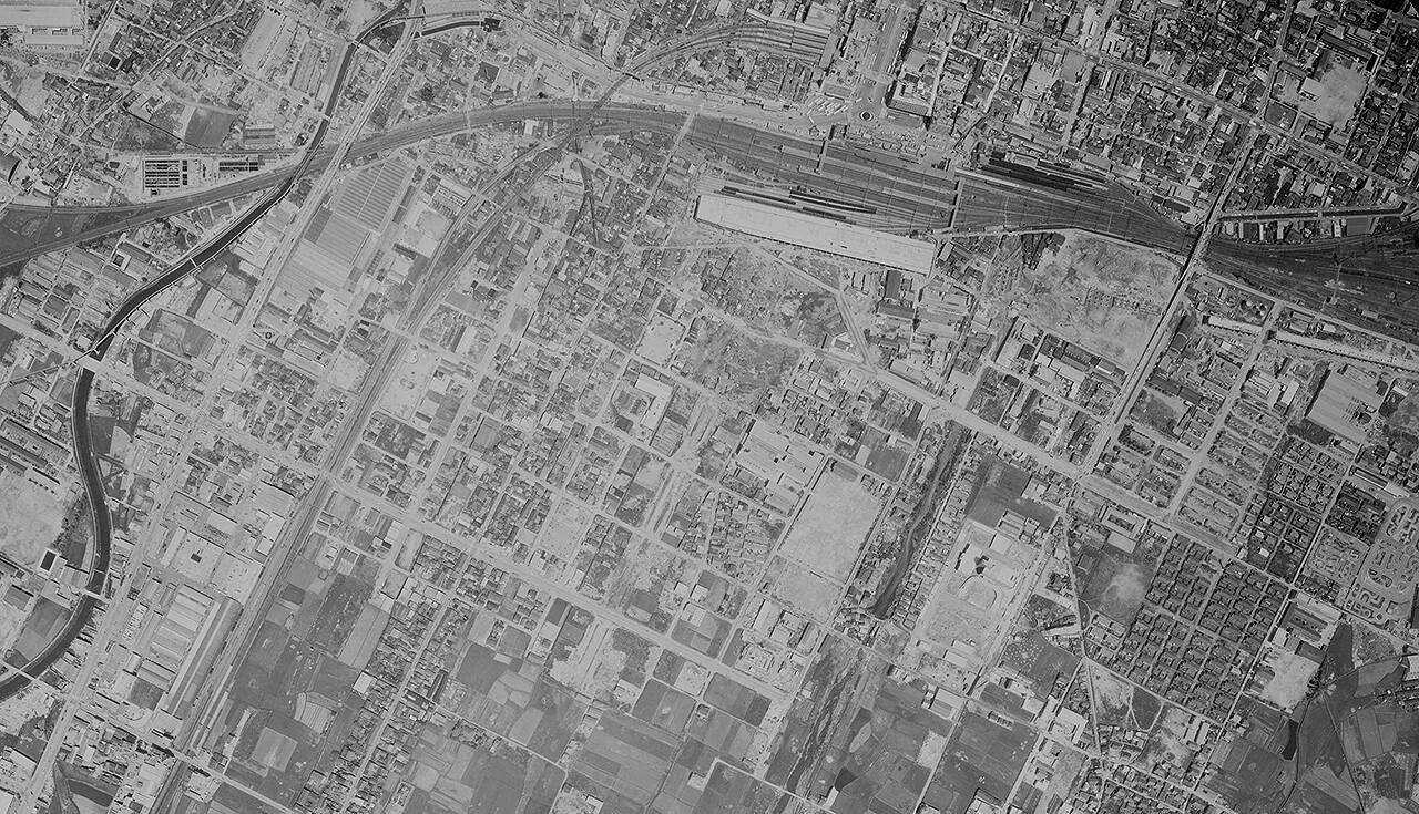 ↓↓↓画像は国土地理院1970年の上空写真で、こんどは姫路駅の大阪寄りをみてみる。