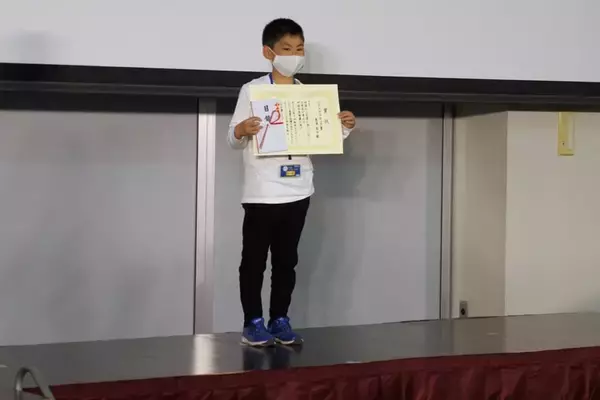 鉄博の新幹線の前で受賞者全員で記念撮影。右側は特別審査員を務めた鉄道好き芸人のダーリンハニー・吉川正洋さん、鉄道好きプロダクションマネージャーの南田裕介さん(後列)、女子鉄アナウンサーの久野知美さん(...