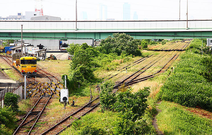 名古屋港駅の線路はいま、県道227号 金城ふ頭線付近で途切れている。むかしはこの先、ガーデンふ頭へむけて線路がのびていて、広大な貨物ヤードがあった。