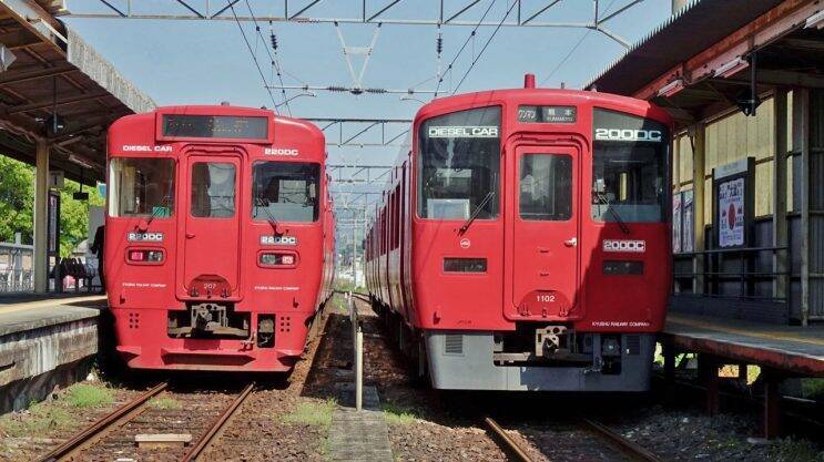 トップ画像は、豊肥本線肥後大津駅2番のりば(左)の下り普通列車宮地行。3番のりばの熊本行。