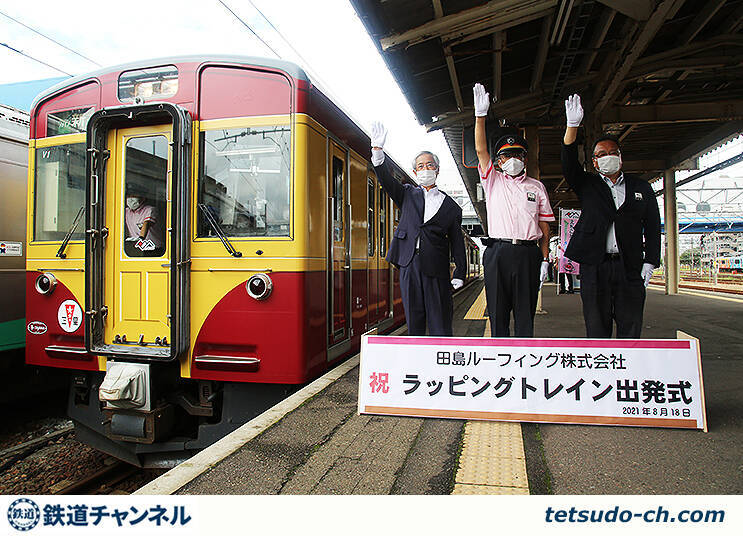 田島ルーフィングは、同社製品のデジタルフィルム オルフィーを使用し、1978年まで国鉄 新潟地区で運行していた新潟色をイメージさせるラッピングで同社製品をPRする。