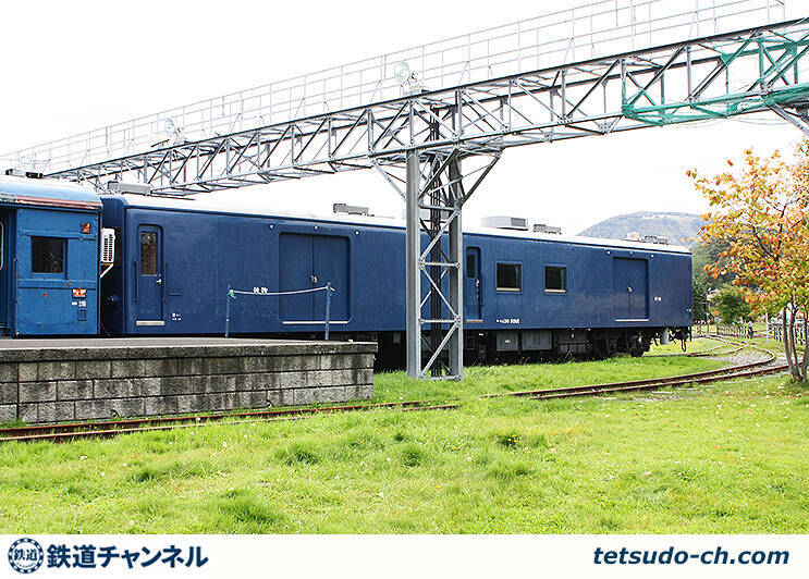 ここは北海道 小樽市、小樽市総合博物館。ここに、となりの車両に移れる貫通路がない「日本で現存する唯一の荷物車」がいる。