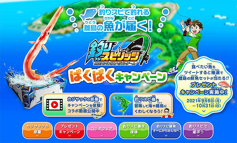 バンダイナムコアミューズメントは、魚釣り体験ゲーム『釣りスピリッツ』のゲーム内で釣れる魚が、リアルな離島から自宅に届く「釣りスピリッツ ぱくぱくキャンペーン」を10月31日まで開催。