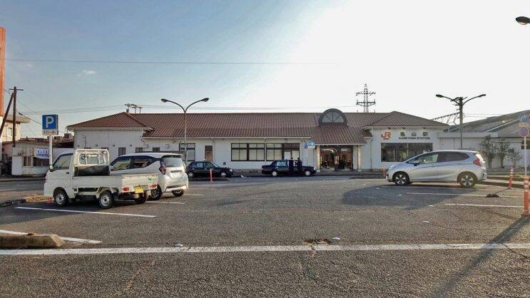 亀山駅に来たのが2020年12月22日、冬至の翌日です。夕暮れが早く、15時半ですがかなりの西日です。