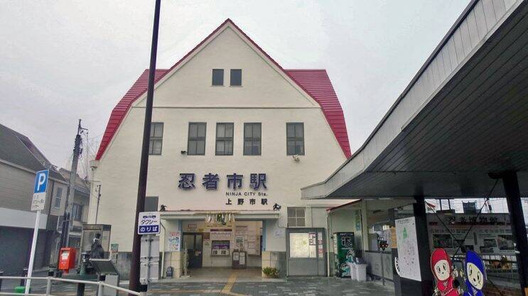 写真は朝7時過ぎの上野市駅。流石にお正月の飾りが出入口の上にあります。