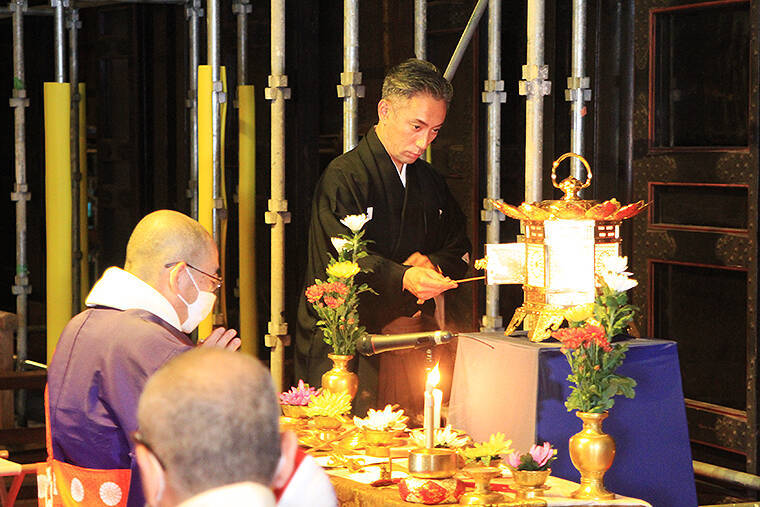 特別記念公演の前夜、延暦寺で「不滅の法灯分灯式」