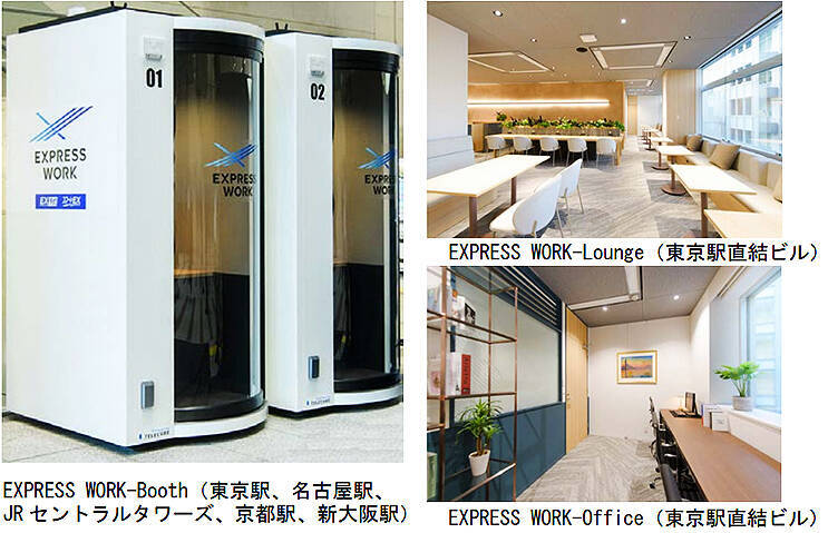 東京駅にはEXPRESS WORK-Booth、EXPRESS WORK-Lounge、EXPRESS WORK-Office が、名古屋駅・京都駅・新大阪駅にはEXPRESS WORK-Booth が設置される。