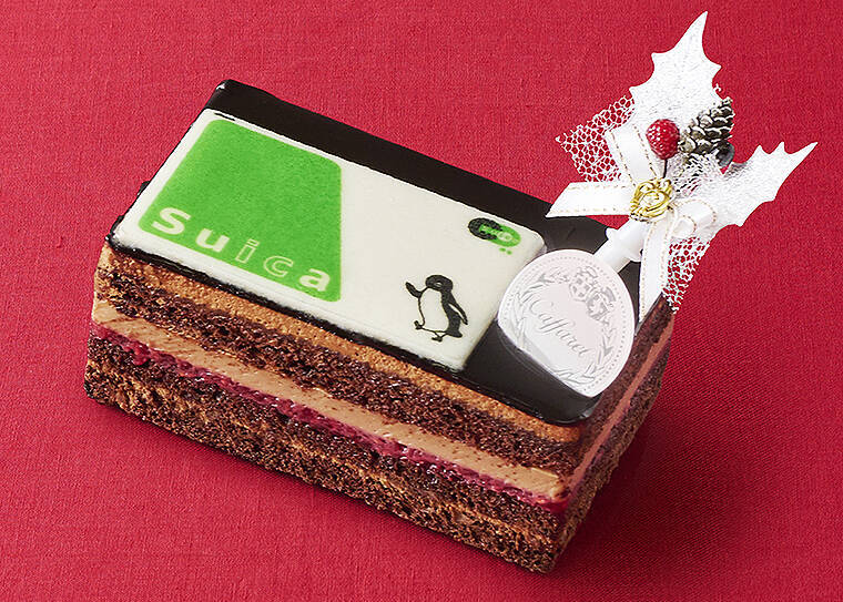 「マジパンでつくった本物そっくりの Suicaカードが乗っている、毎年予約完売のチョコレートケーキです。ジャンドゥーヤとビターチョコレートをベースに濃厚なチョコレートを楽しめます。2021年版は生ケーキの状態で配送も可能になりました」