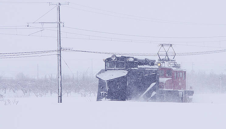 いっぽう、弘南線にはED33形3と除雪用ラッセル車キ104が除雪を担当。弘南鉄道公式Twitterには、平賀駅に留置中のED33形3+キ104の姿が、1月6日に投稿されている。