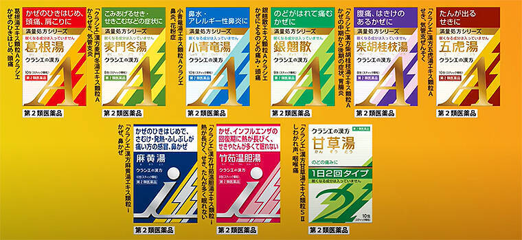 こうした長引く風邪に対し、クラシエ薬品は小青竜湯(しょうせいりゅうとう)と麦門冬湯(ばくもんどうとう)をすすめている。