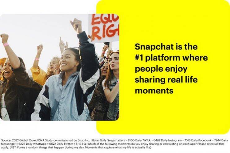 Snapchat は「全体として、スナップチャット世代は、ありのままの自分を見てもらいたいと願い、世界をより良い場所にしたいという価値観、前向きな希望、願望を持っている、非常にパワフルでユニークなオーディエンス」と今回の調査結果を受けてコメント。