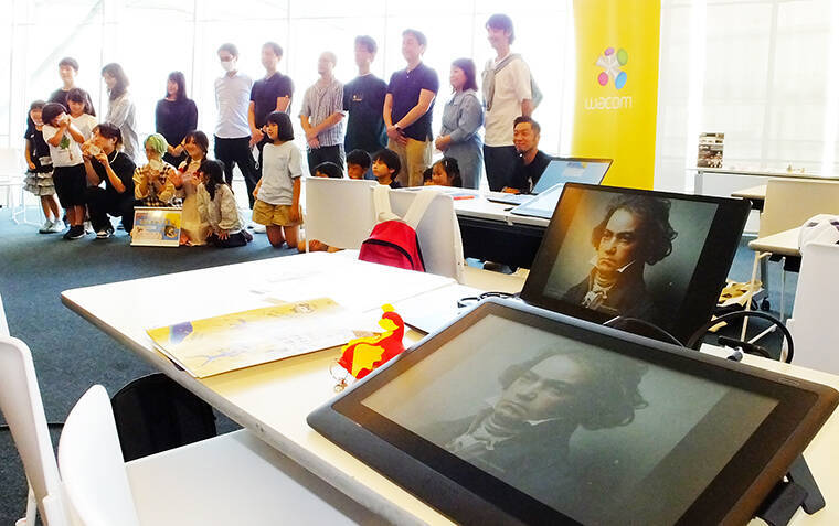 子どもたちが夢中になってペンで描いているのは、ワコム液晶ペンタブレット「Wacom Cintiq 16」。世界中のプロ現場で使わているCG制作ソフト「ZBrush」の簡易版「ZBrushCore」で、生まれてはじめての3DCG制作に挑戦した。