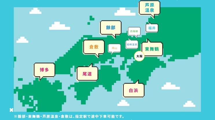 お値段は大人1名往復で1回5,000円。これはエントリー代(4,500円)ときっぷ代(500円)の合算で、大阪市内発着という条件はあるものの、通常のきっぷの値段と比較すると45%~82%オフとなっており、破格と言って差し支えないでしょう。