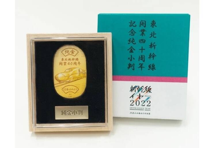 東北新幹線の開業40周年を記念した商品で、「日本が世界に誇る技術の結晶である新幹線を日本の伝統的な小判という形で表現」したといいます。