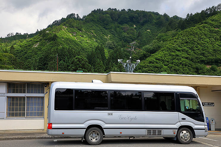 会津川口~只見 27.6km の間をバス代行輸送(画像)で接続し、復旧工事が続いていた。