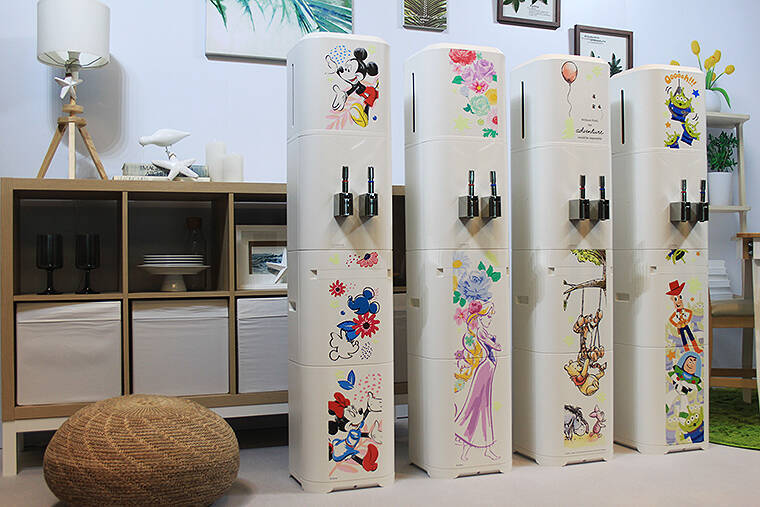 このウォーターサーバー「ディズニー/ピクサーデザイン サーバー」は、アクアクララの人気機種アクアファブをベースにディズニー/ピクサーの人気キャラクターである「ミッキー&ミニー」「ラプンツェル」「くまのプーさん」「トイ・ストーリー」を前面にデザインしたモデル。