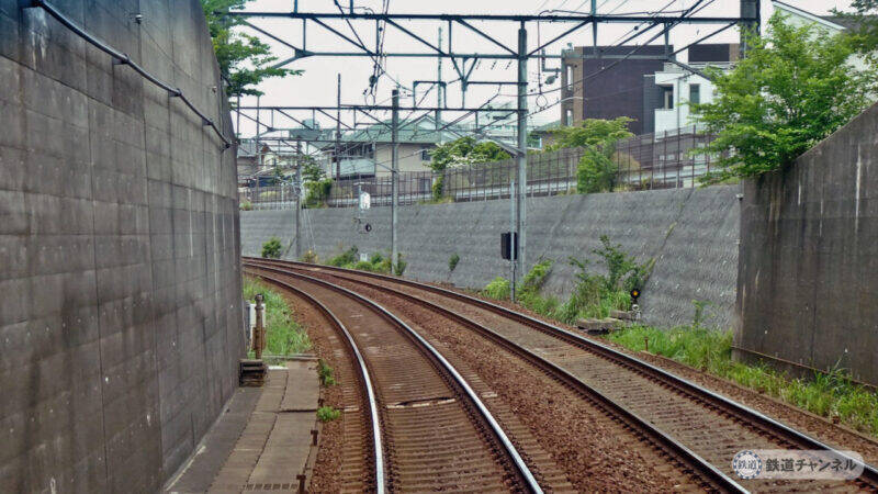少しずつ堀割から線路は地平の高さになります。