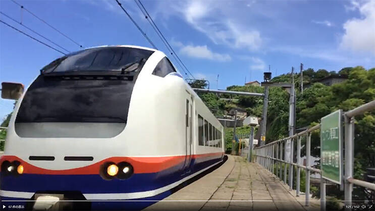 (1)画像・Twitterは、KEISHIN(Snow Rabbit Exp.683) @etkmk2214 さんの「しゃべ鉄」投稿。Twitter動画に登場するこの特急列車、次の停車駅は?