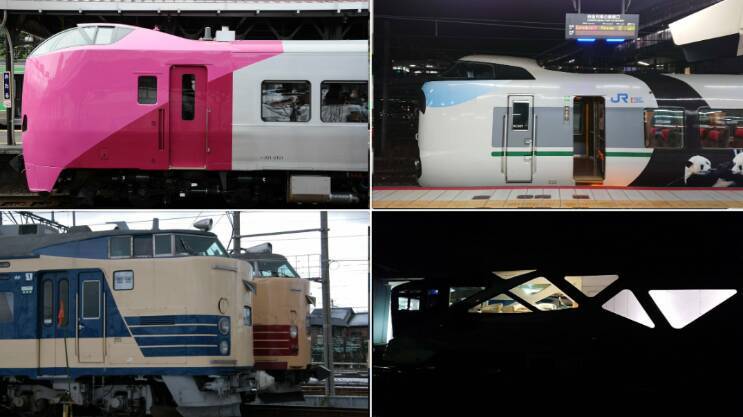 (1)画像・Twitterは、はっちゃん @boeing787ytk さんの「しゃべ鉄」投稿。この4枚の写真のなかで、通常旅客運用で、ベッドがある車両の形式、ベッドになる座席がある車両の形式は?