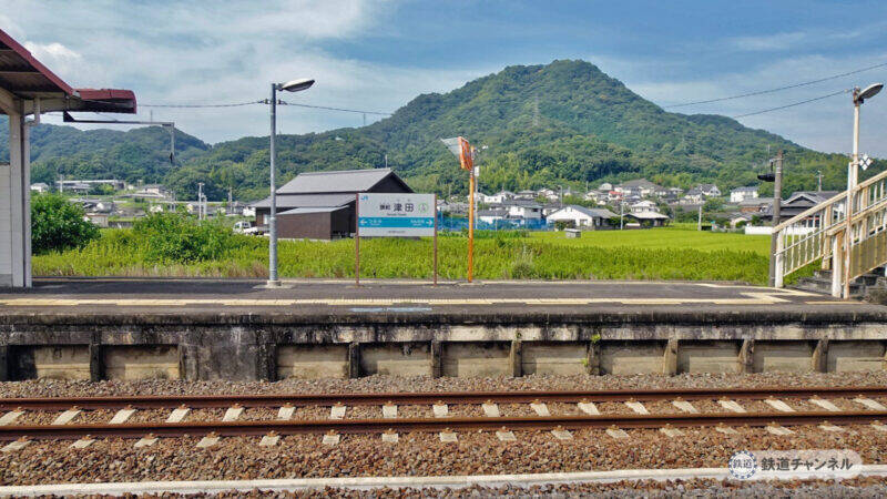 トップ画像は、JR四国高徳線讃岐津田駅。駅舎のある下りホームに出て島式ホームの駅名標。