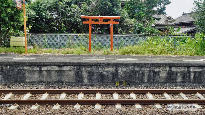 駅舎のある1番のりばにも赤い鳥居。神額は「大麻比古神社」。徳島北農業協同組合が寄贈したものでしょうか。