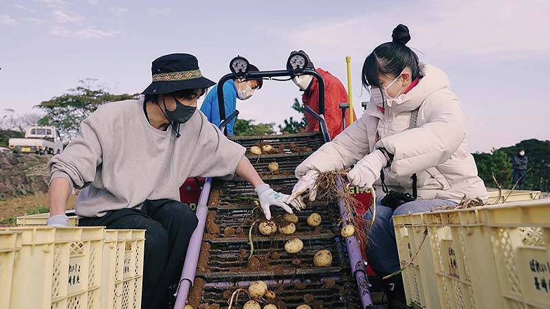 ようやく暖かな日差しに恵まれた4日目は農家の手ほどきで、最初は難しかったジャガイモ収穫作業に夢中になった2人。
