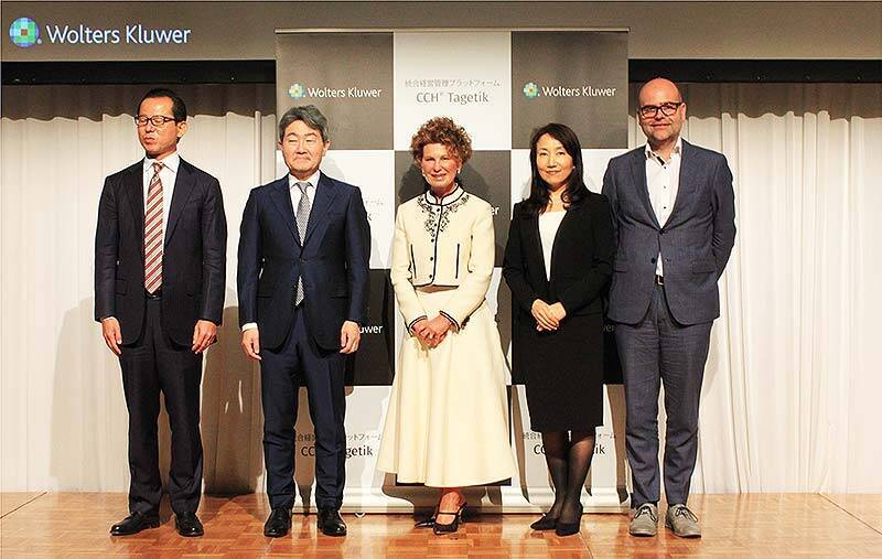 会場には、ウォルターズ・クルワー 経営管理 & ESG 部門 Karen Abramson(カレン・アブラムソン)CEO、同 CCH Tagetik 箕輪久美子 日本マネージングディレクターらが登壇し、新たに動き出すソリューションについて説明。
