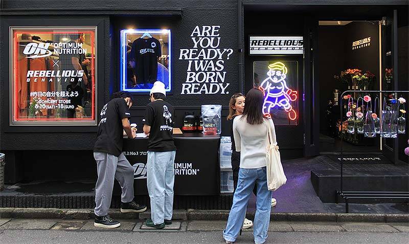 まず「オプティマムニュートリション #昨日の自分を超えよう CONCEPT STORE」が、原宿 REBELLIOUS BEHAVIOR(レベリアス ビヘイビア)に、6月10~18日オープン。