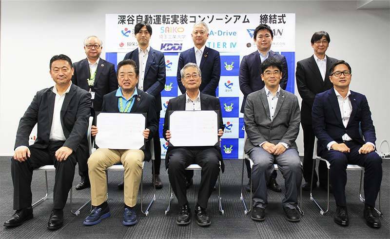 ―――深谷市、埼玉工業大学、A-Drive(神奈川県横浜市)、アイサンテクノロジー(愛知県名古屋市)、損害保険ジャパン(東京都新宿区)、KDDI(東京都千代田区)、ティアフォー(愛知県名古屋市)、深谷観光バス(埼玉県深谷市)が、きょう6月27日、埼玉県 深谷市役所で「深谷自動運転実装コンソーシアム」連携協定を締結。