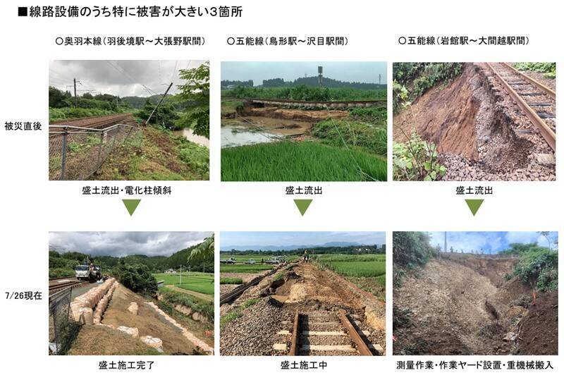 大雨により被害を受けた線路設備などの復旧工事が順調に進んでおり、大曲~和田駅間で7月31日(月)始発から運転を再開します。