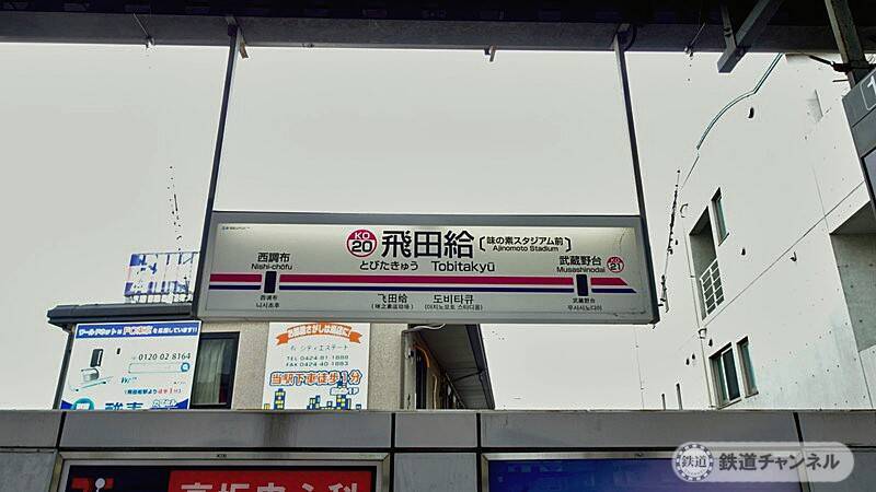 トップ画像は、飛田給駅下りホームの駅名標。