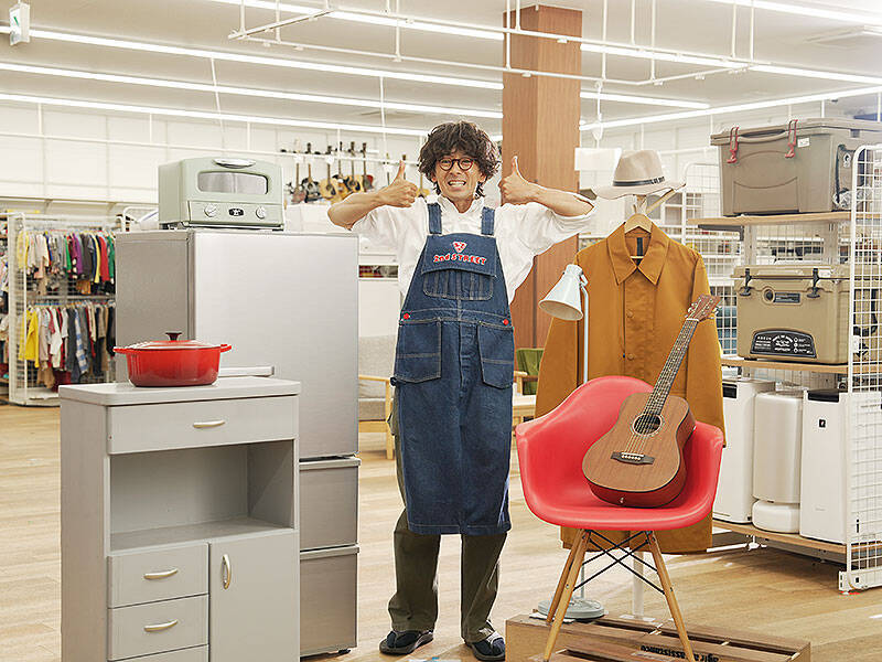 今回の撮影は2店舗で実施され、どちらの店舗でも滝藤賢一は買い物を楽しみ、古着好きとのことで撮影中に店内を物色し、古着を手にとって価格に驚いたり、食器や皿を吟味したり…というシーンも。