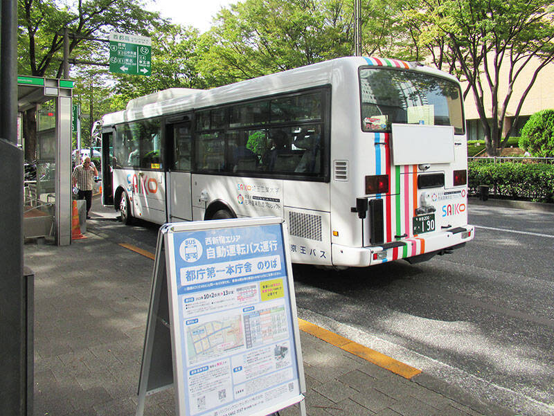 しかも、新宿のど真ん中の街なかを、京王バスの運転手によって、実証実験ではなく既存の都庁循環(CH01系統)と同一路線(約2.0km)を自動で走ったのだ。
