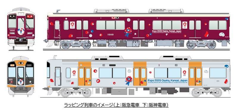 阪急・阪神が2025年大阪・関西万博の機運醸成に向け、公式キャラクターである「ミャクミャク」などをデザインしたラッピング列車を運行します。