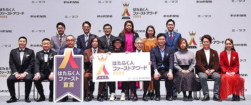「はたらく人」一人ひとりを「ファースト」に考えていく企業を称える「はたらく人ファーストアワード2023」(主催:ミイダス・朝日新聞社、後援:経済産業省)の授賞式が、浜離宮朝日ホールで2月21日に開催され、ミイダス 後藤喜悦 代表取締役社長、朝日新聞社 メディア事業本部 アカウントソリューション担当 渡部秀一 本部長、審査員の fermata 杉本亜美奈 代表、ツギノジダイ 杉本崇 編集長、トイトイ 永島寛之 CEO、morich 森本千賀子 代表らが登壇。