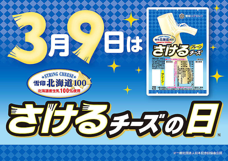 「雪印メグミルクは3月9日を「さけるチーズの日」に制定し、日本記念日協会に記念日として正式に認定されました。