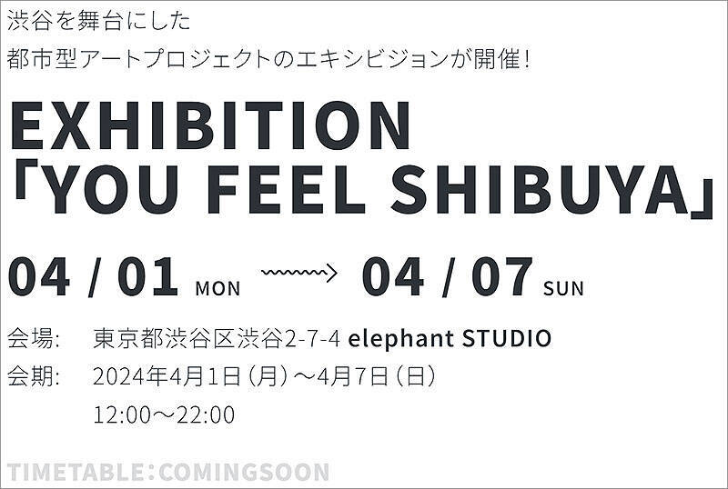 また、都市型アートプロジェクトのエキシビジョンEXHIBITION「YOU FEEL SHIBUYA」の開催も決定。4月1~7日の1週間、elephant STUDIO(東京都渋谷区渋谷2-7-4)で開催されるから、気になる人は、公式サイトをチェックして行ってみて↓↓↓