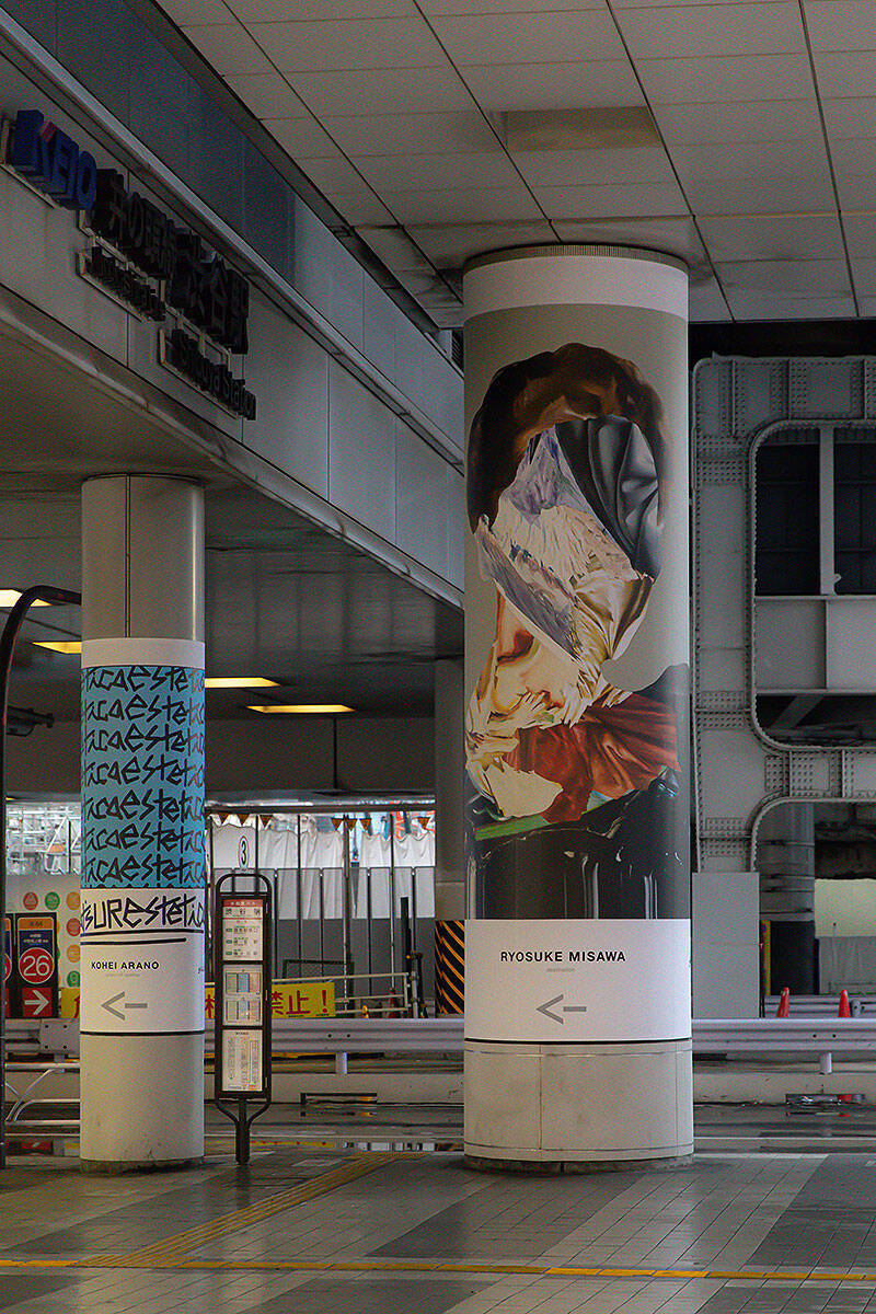 ―――そんな渋谷駅前エリアマネジメントの想いに共感したアーティストたちが参画し、アーティスト支援やアートプロジェクト企画を手がけてきた Embedded Blue(片岡奨 代表取締役)がキュレーション・企画制作し、選ばれた4人のアートが、ここ渋谷マークシティの丸柱橋脚に出現したというわけだ。