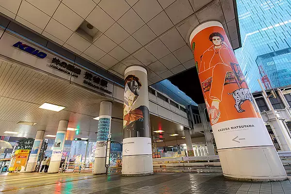 ここは渋谷のどまんなか。京王井の頭線とJR渋谷駅を結ぶ渋谷マークシティ連絡通路。その巨大な橋脚に、新進気鋭アーティストたちのアートが出現した。