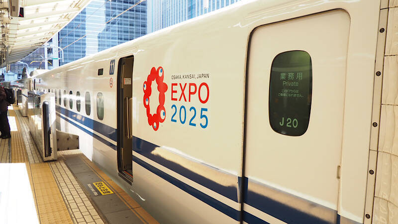 1年後の大阪・関西万博に向け、2024年4月13日から万博ロゴなどをラッピングした新幹線が運行を開始しました。
